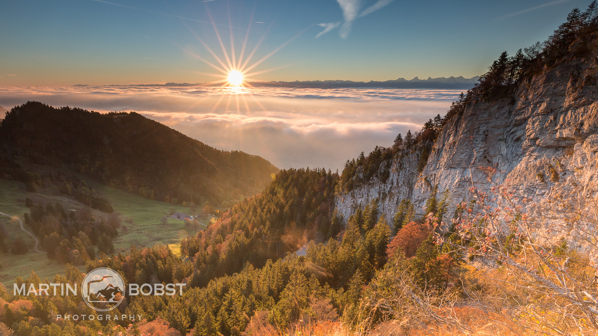 Ich kam oben an und marschierte dann anschliessend zu Fuss der Wandfluh entlang um zu meinem Spot zu gelangen. In der Dämmerung erkannte ich noch andere Personen die mit Kamera und Stativ unterwegs waren. Bei diesen Wetterbedingungen war dies auch nicht weiter verwunderlich.